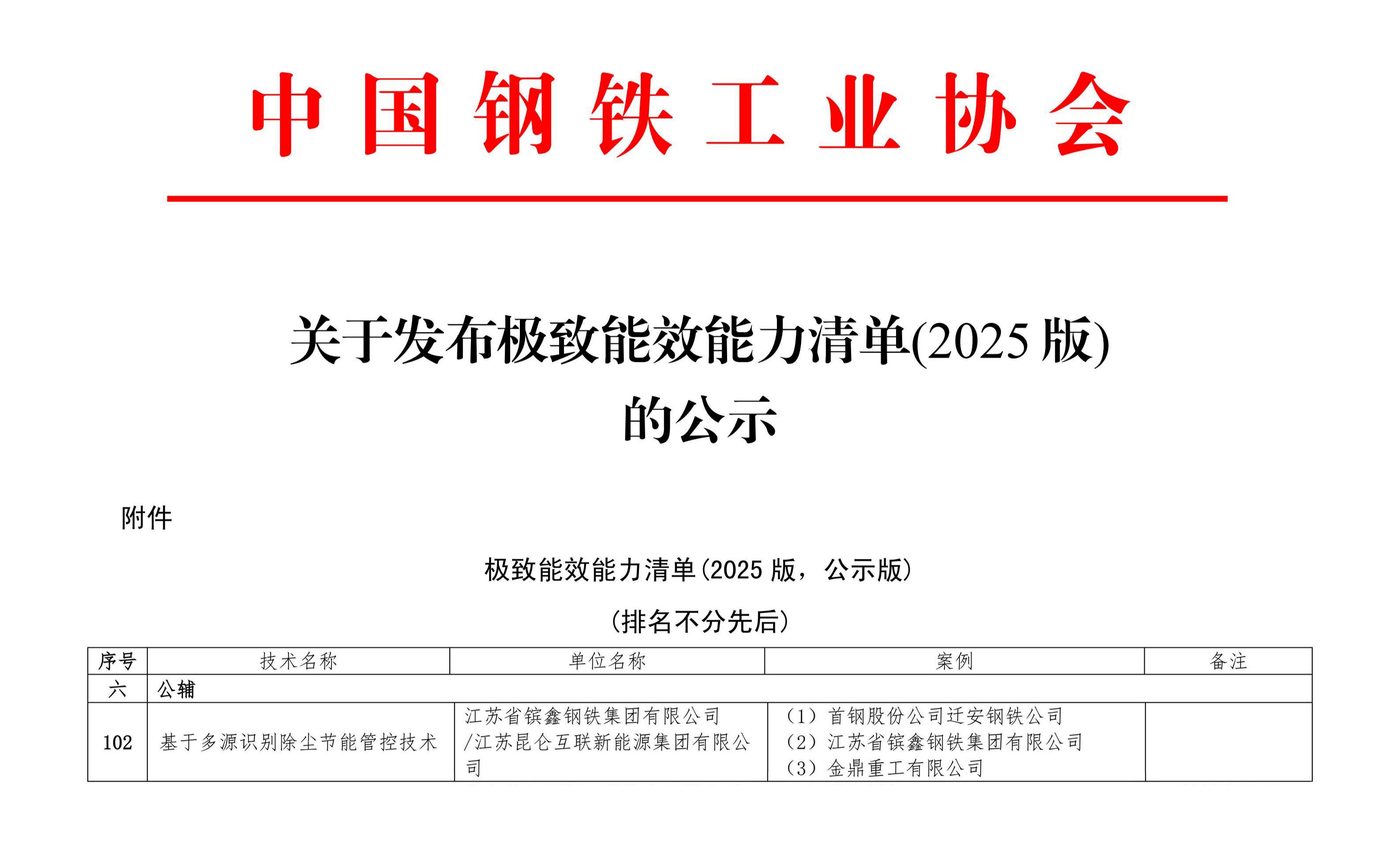 近日,昆仑新能凭借自主研发的“基于多源识别除尘节能管控技术”,成功入选中国钢铁工业协会与国家节能中心联合发布的《极致能效能力清单(2025 版)》,成为钢铁行业能效提升领域标杆技术代表。此次入选是中国钢铁行业对昆仑新...